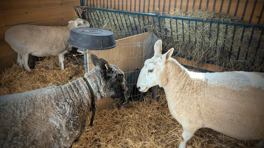 Juniper (right) and Charlotte (left) are having the kind of discussion that precedes “feedback” in the sheep sheds.